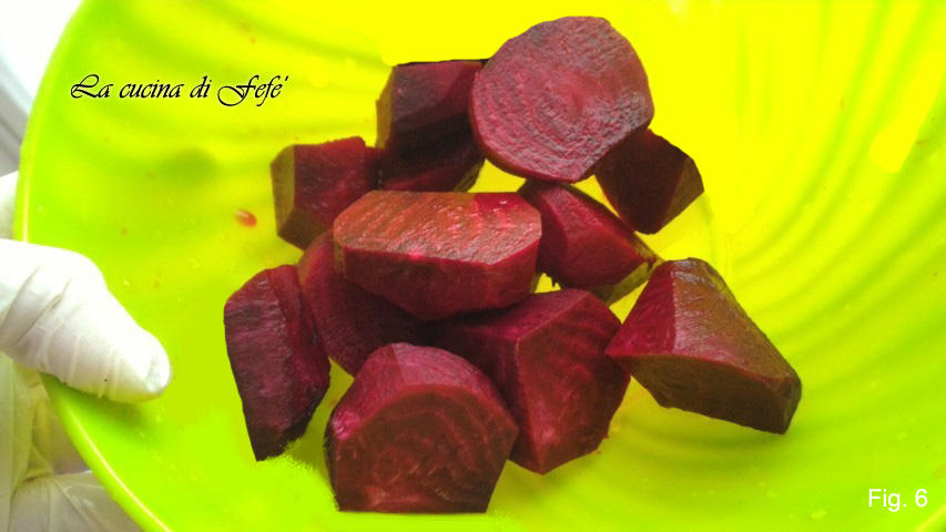 Meanwhile, peel the beet and cut it into quarters. In the photo, I used 3 for other preparations (fig. 6).
