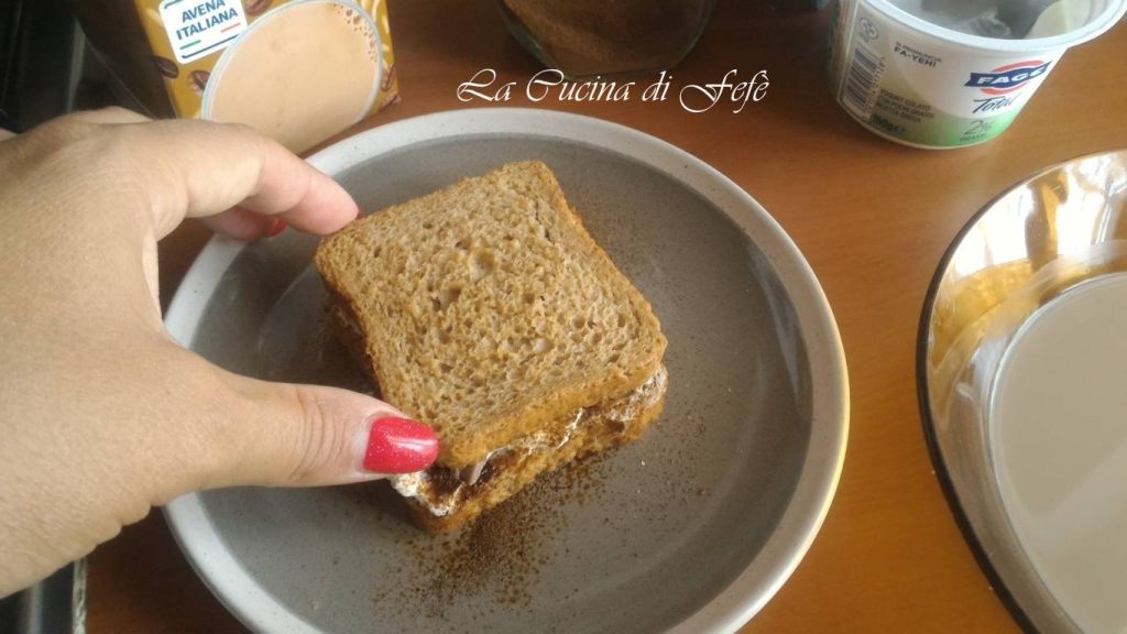 Place another slice of softened toast on top, previously soaked in plant-based milk and well-drained.