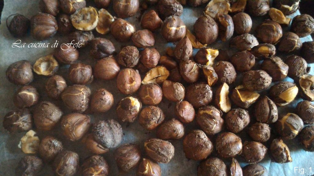 After toasting the hazelnuts already shelled for 8′-10′ at 392°F, let them cool and chop them in a mixer, except for about ten which will be left whole (fig. 1).