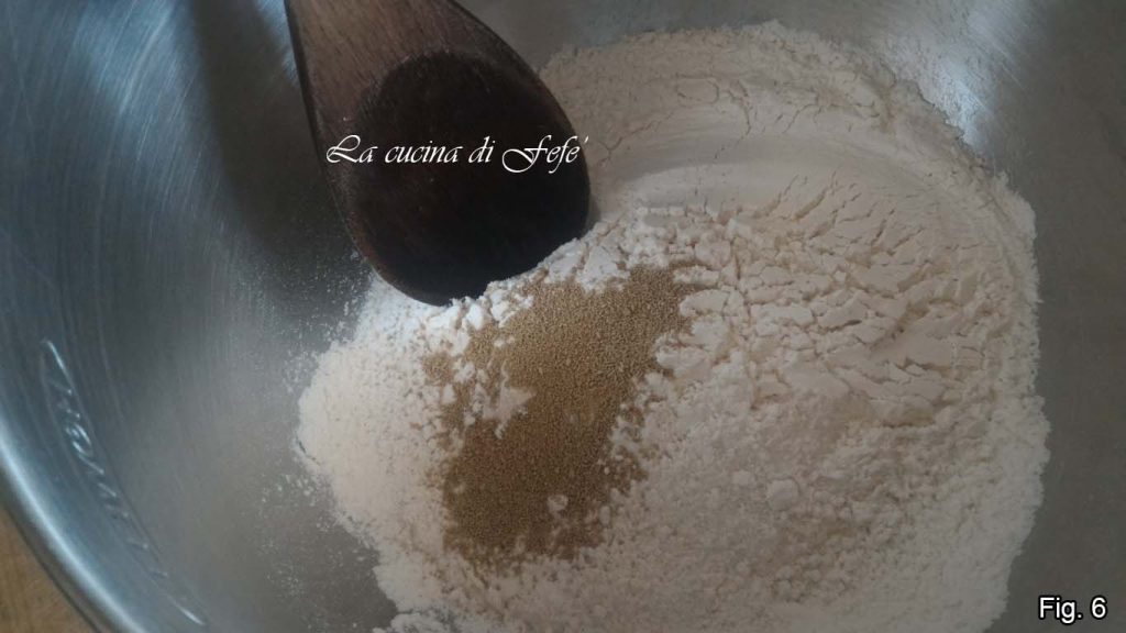 In the bowl of the stand mixer, combine the sifted flour with the yeast and mix (fig. 6).