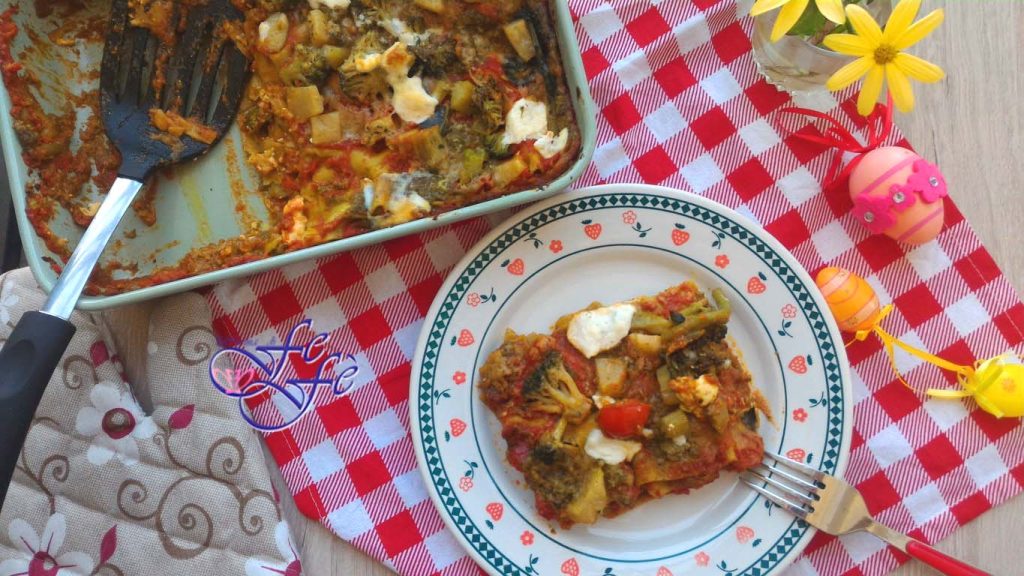 This year, Easter was all about simplicity for everyone! No big family dinners, no lavish celebrations, and just a few simple courses. In the intimacy of our homes, we spent this holiday trying not to think about what is happening in Italy and now all over the world! Personally, I still chose to give myself and my husband a moment of cheerfulness by setting a nicely decorated table, adding a small bouquet of flowers picked from the pots on our balcony, and cooking this fantastic lasagna. The choice, as always, fell on a unique vegetarian main course rich in flavors, thanks to the vegetables that enrich it layer by layer. Furthermore, although lasagna is often traditionally topped with béchamel, I preferred to opt for a cherry tomato sauce, excellent homemade pesto, and ricotta flakes here and there, which I tell you, will not leave you disappointed! This lasagna will be perfect for all occasions, and you can enrich it every time with the seasonal vegetables you have available, just like I did!