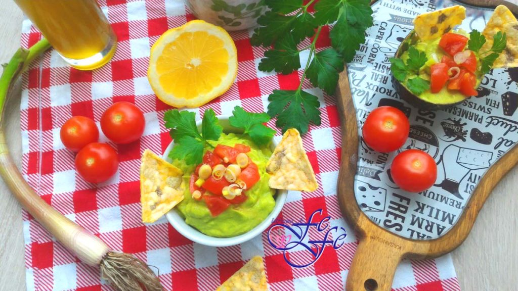 The version I propose today is a slightly revised guacamole recipe. I made room for spices and fresh aromas, which I particularly love, adding a touch of vibrant color thanks to the cherry tomatoes and finely chopped fresh scallion.