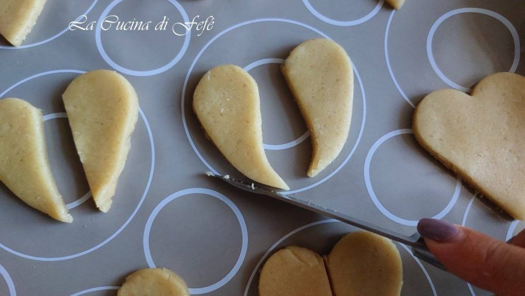 • It’s important at this stage not to overcrowd the tray because the cookies will double in number. Gently separate the two halves and, always with the knife, shape each tip by curving it inward, being careful not to break it.