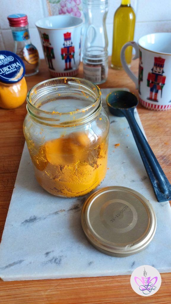 Preparing it is very simple: you only need a few basic ingredients. Once ready, the turmeric paste can be stored in the fridge inside a sterilized glass jar for about one month and even longer, so you always have it ready to use.