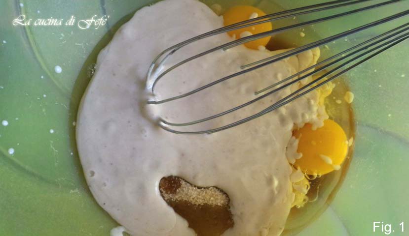 You should get a light and fluffy mixture, then add the oil, kiwi juice, starch, and flour sifted with baking powder, continuing to mix until you get a homogeneous and well-blended batter (fig. 2).