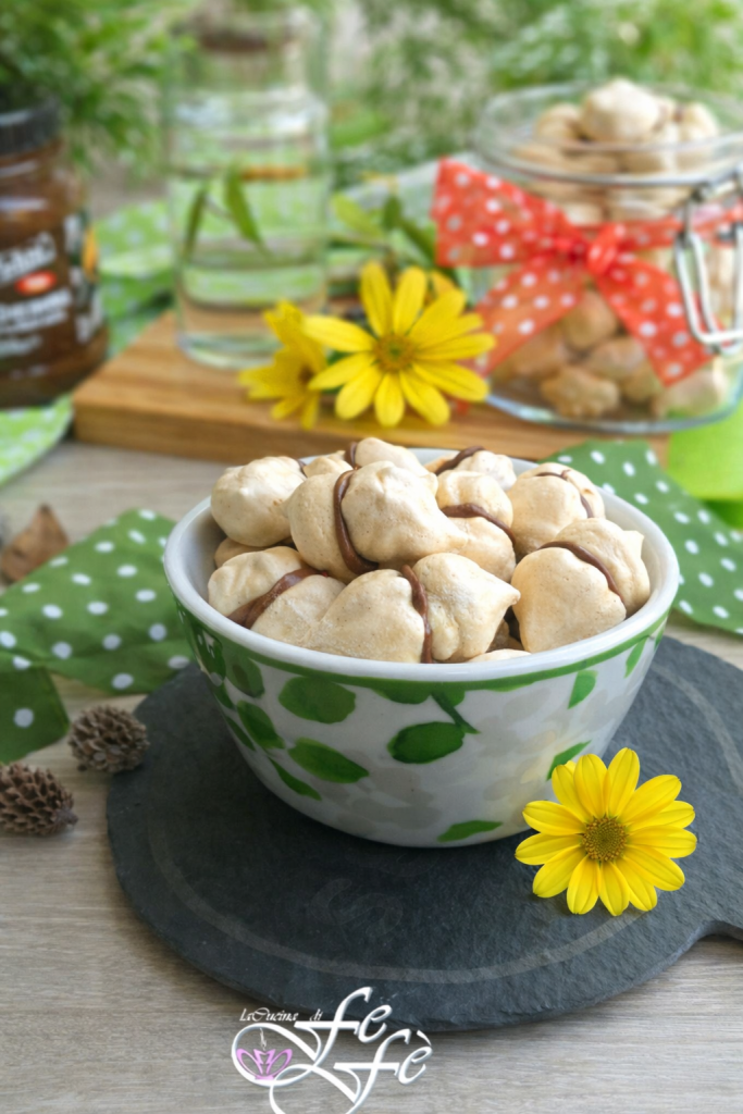 The real trick to the success of these kisses is patience. They need to be prepared a day in advance: this allows the meringues to dry properly in the oven at a low temperature, becoming light and crumbly, ready to welcome the rich hazelnut filling.