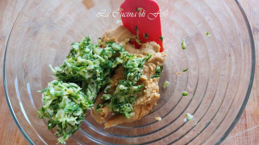 Once the resting time has passed, wring the zucchini well to remove their liquid. They must be very dry.