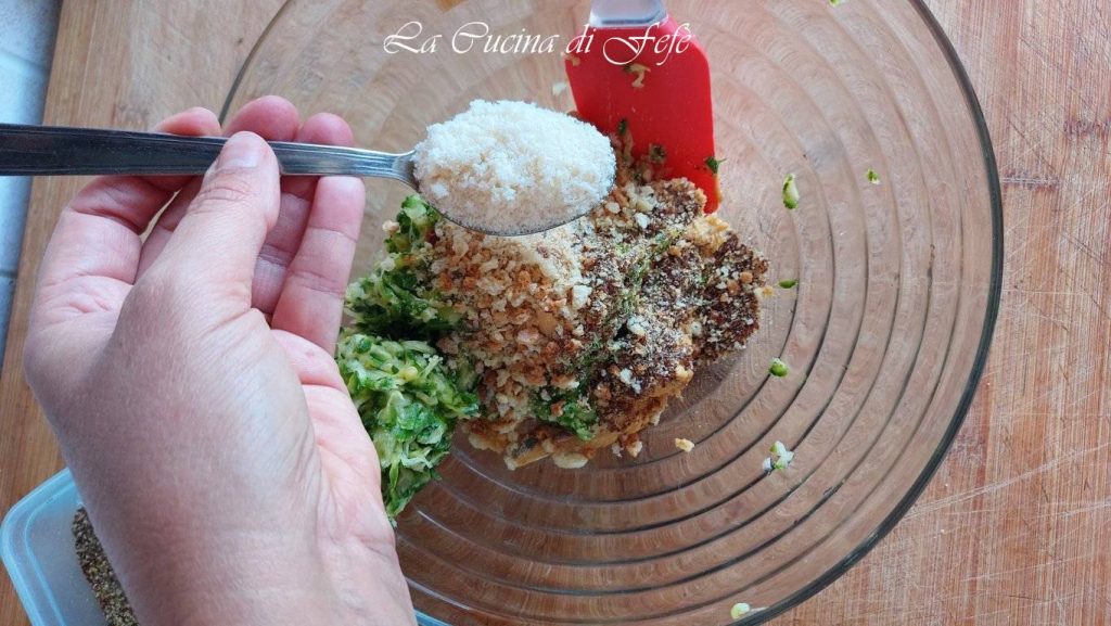 At this point also add the breadcrumbs, the ground flaxseeds and the grated Parmigiano.