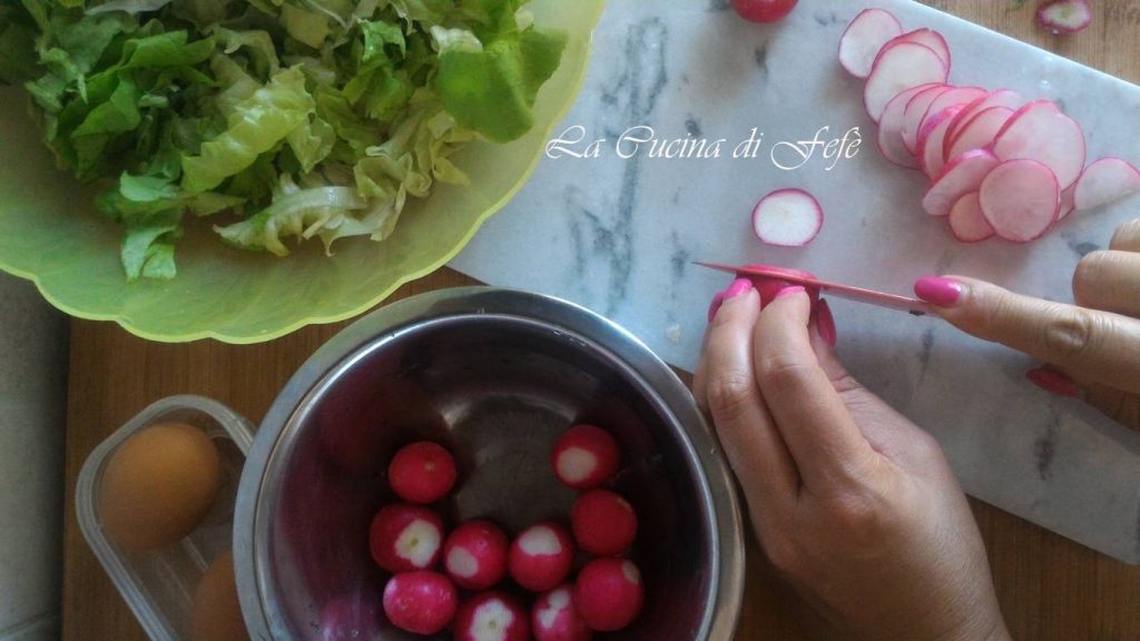 • Compose your salad, placing the lettuce at the base of a large salad bowl, the broken green beans and now cold potatoes, carrot ribbons, cherry tomatoes, radishes, hard-boiled eggs, and complete with pitted olives, well-drained tuna fillets, and mozzarella balls. Garnish with basil leaves, a sprinkle of oregano to taste, and season with the vinaigrette, mixing the oil and vinegar with a pinch of salt inside a jar. You just need to shake it for a few seconds and pour it directly into the salad.