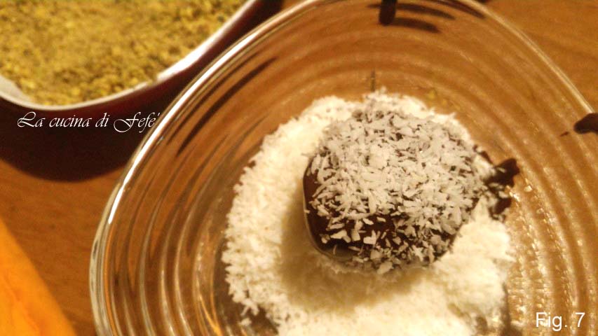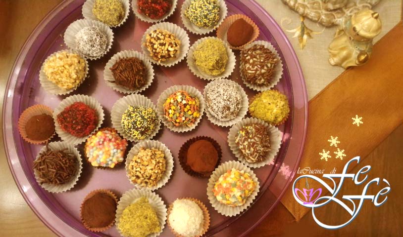 Roll them in the various flours and coating sprinkles, choosing from coconut, pistachio, hazelnuts, cocoa, and sprinkles, then store in the refrigerator for 1 hour or until ready to eat.