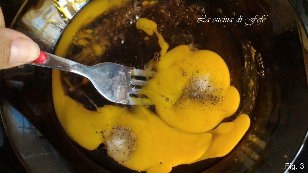 Beat the eggs and season them with a pinch of salt and a grind of pepper (fig. 3).
