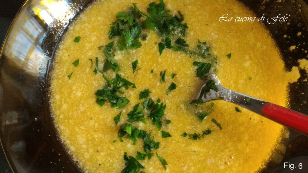 Incorporate the parsley into the beaten eggs and mix (fig. 6).