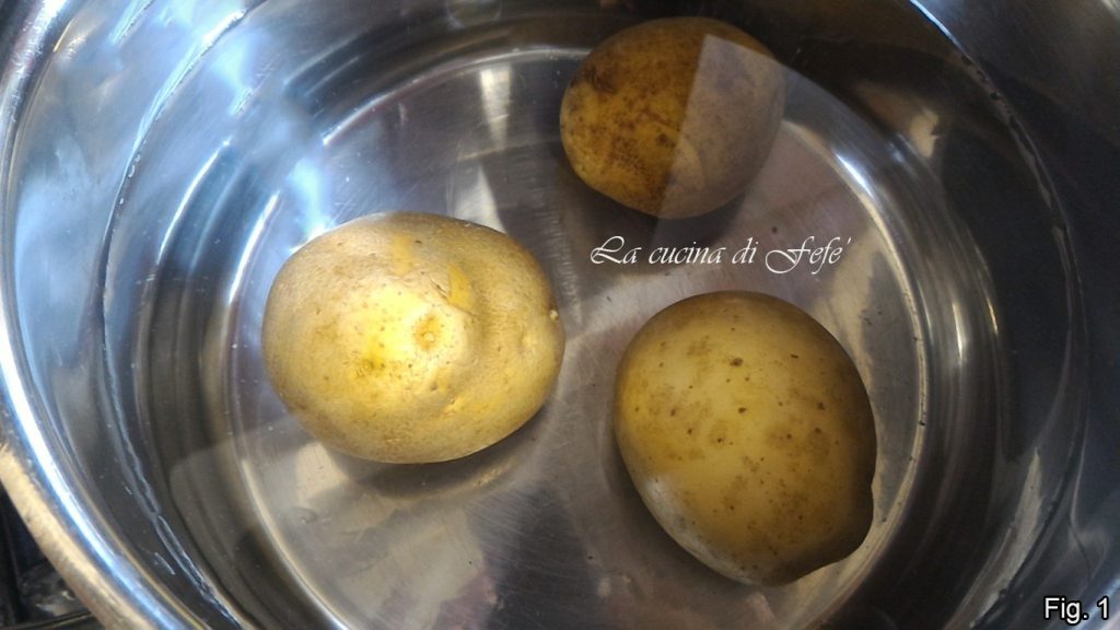 In a pot, boil the potatoes for about 25 minutes from when it starts boiling. The tines of a fork should pierce easily (fig. 1).