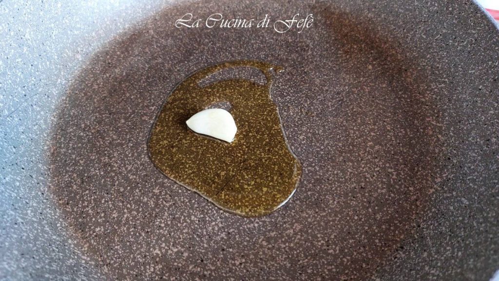 • Meanwhile, in a large pan, brown a garlic clove with 2 tablespoons of oil for a couple of minutes.