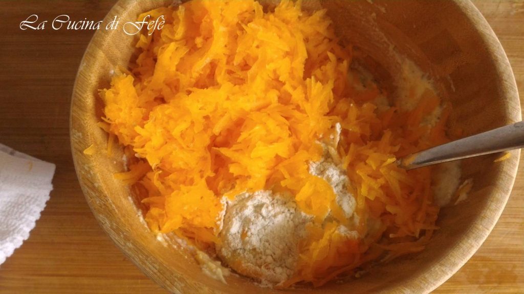 • Separately, in a terrine, grate the raw pumpkin that has been deprived of its seeds and outer peel.