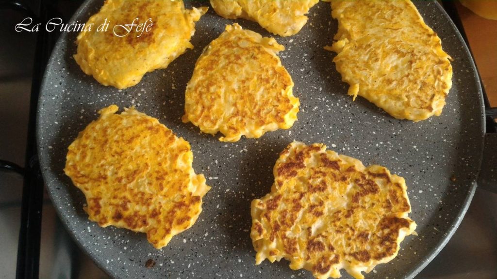 Lately, the time I dedicate to cooking has significantly decreased. Some projects left on hold over the years have needed more attention, and like many others, I am looking for quicker and less demanding solutions! However, quick execution often means frequent consumption of pre-cooked foods which, due to their ingredients (sugars, salt, additives, preservatives), can eventually create a sort of dependency and cause health imbalances, such as obesity, diabetes, and cardiovascular diseases. The fritters I propose today represent a valid compromise between the need to find some expedient to speed up the preparation of main meals, and the desire not to succumb to the allure of ready food! Here, all ingredients are worked in a bowl, including the pumpkin which will be added raw, simply by grating it. A good time saver, don’t you think? They can be cooked either in the pan in a matter of minutes, in an air fryer, or in a conventional oven. The result will be extraordinarily tasty, healthy, and genuine, thanks also to the addition of pea flour, which has higher nutritional values ​​than a typical refined flour, and thus they will also be gluten-free! They will be perfect as a vegetarian main course to propose to the whole family or as a finger food appetizer to enjoy cold with an aperitif!