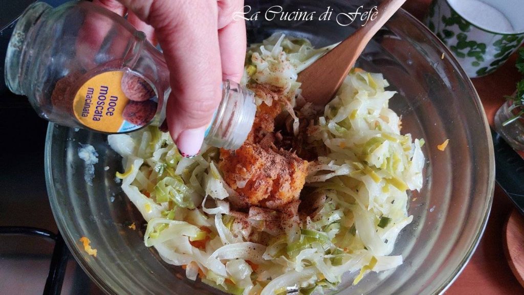 Transfer the stewed cabbage along with the potato and pumpkin puree and add the nutmeg.