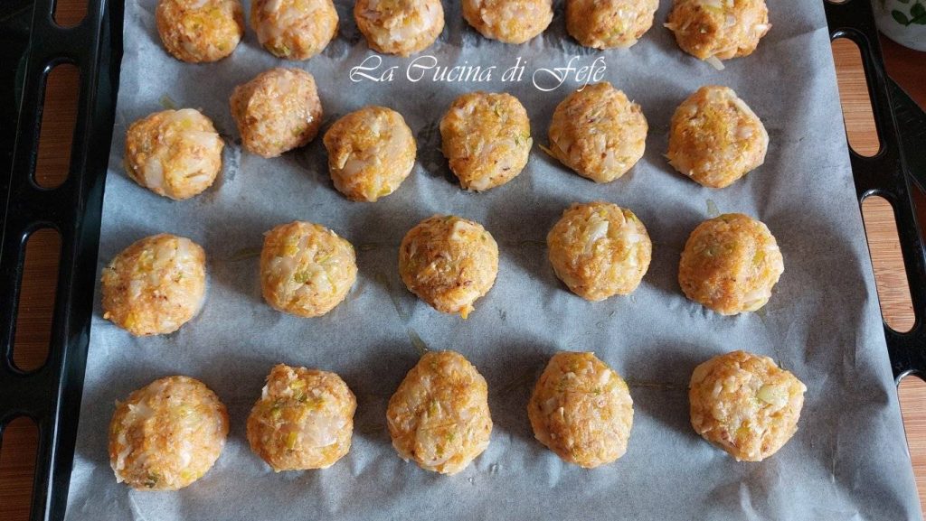Place the meatballs thus obtained on a baking tray lined with parchment paper or a non-stick baking dish brushed with oil and drizzle with a swirl of oil on the surface before baking them.