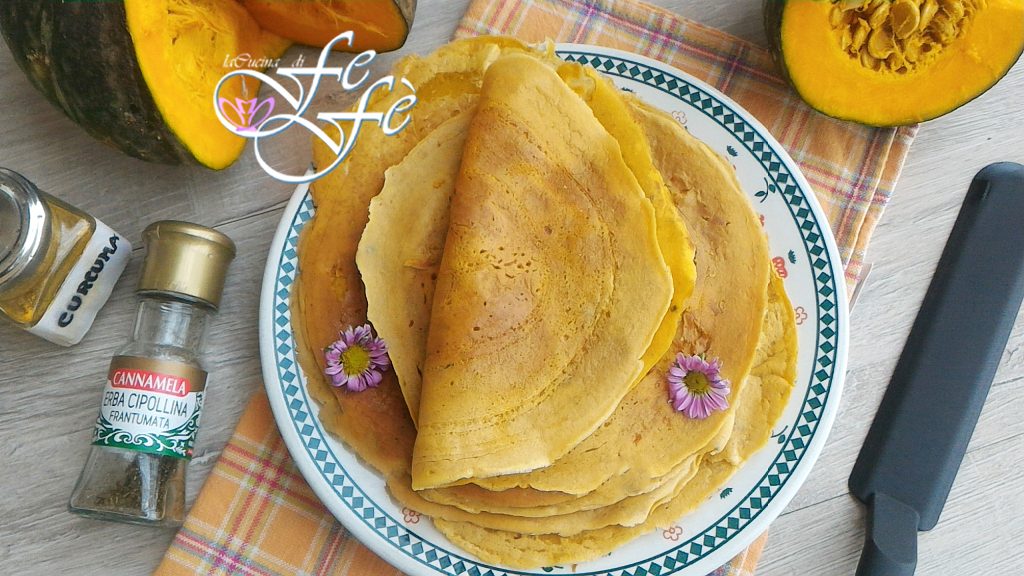 Crêpes, as everyone knows, are the symbol of French cuisine and are made with a few simple ingredients: milk, eggs, and flour. However, like most basic preparations, crêpes have undergone various variations over time, from savory to light, to protein-rich and gluten-free versions. Their diverse universe allows us to explore their full potential! Thus, this versatile pumpkin flour recipe was born! In fact, fresh pumpkin can also be used in the dough, but surely the flour of this autumn vegetable offers a more practical, quick, and healthy way to bring a meal rich in proteins, fibers, vitamins (especially Vitamin A and C), and minerals (Phosphorus and Iron) to the table. Moreover, in the absence of eggs and butter, they are cholesterol-free. A great advantage for our body’s well-being, don’t you think? This recipe I propose today is the prelude to another delicious preparation that you will already find on my YouTube channel and that I will show you here on the blog very soon, so follow me so you don’t miss it!