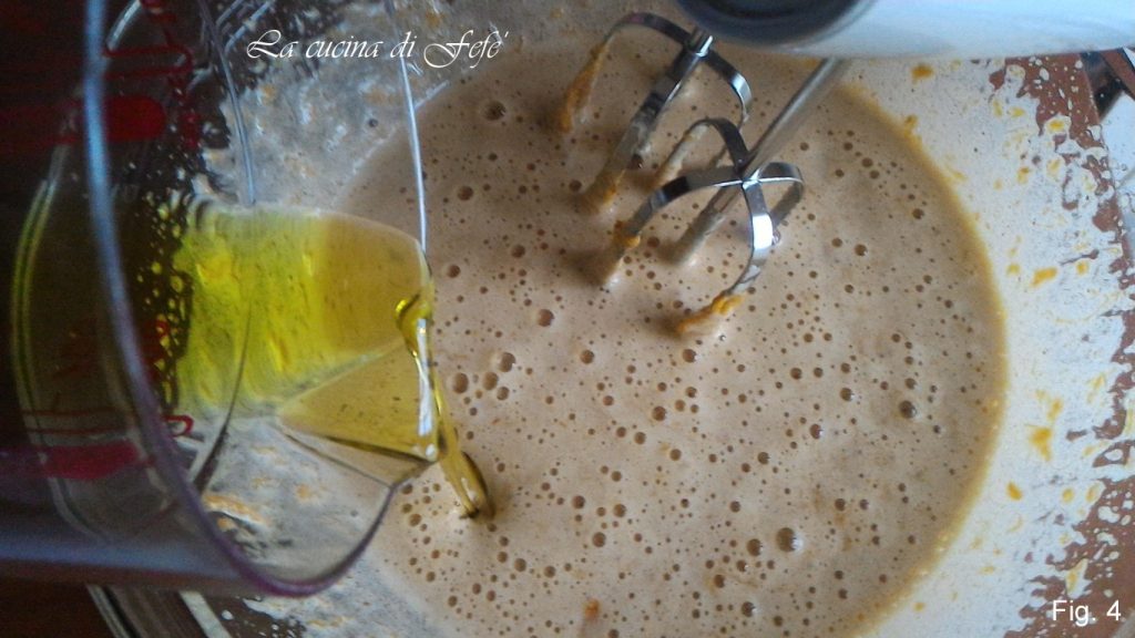 Mix the ingredients with an electric whisk until you obtain a frothy mixture (fig. 3).