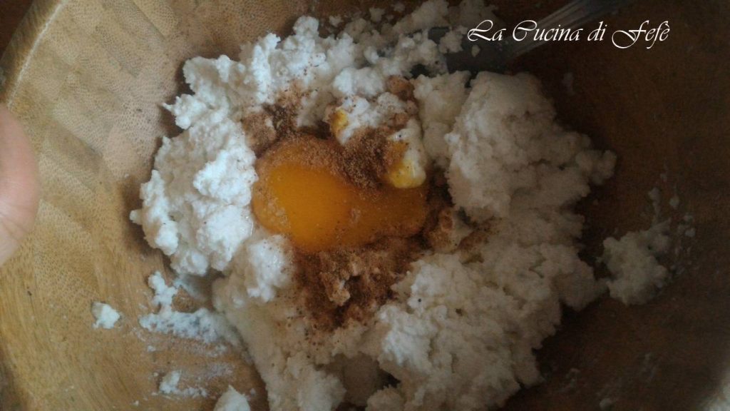 Meanwhile, in a large bowl, mix the previously drained ricotta with the egg, nutmeg, and a pinch of salt and pepper to taste.