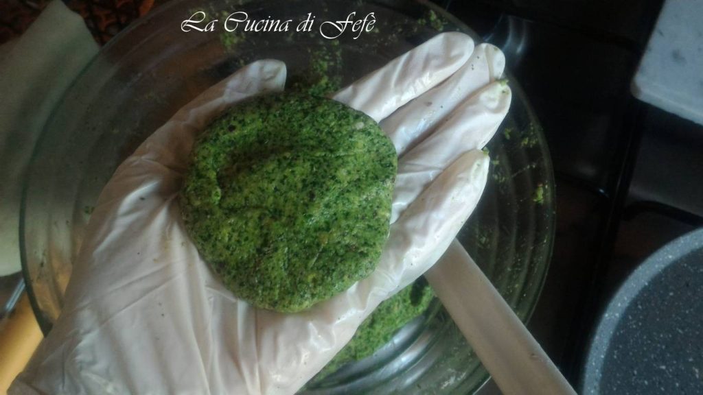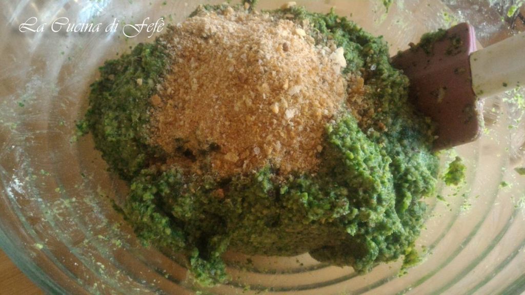 Finish with the breadcrumbs and mix. If the mixture is still soft, you can add another tablespoon of breadcrumbs. Let rest 30′ in the fridge.