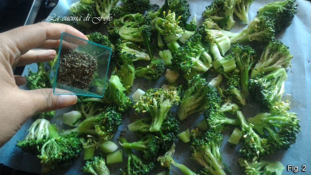 • Clean the broccoli, removing the tougher parts, breaking it into florets and rinse them thoroughly under running water (fig. 1).