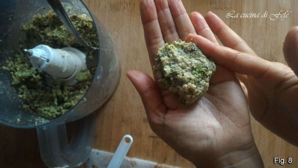 • With hands always well dampened, take 1 tablespoon of this mixture at a time and create the patties flattening them slightly.