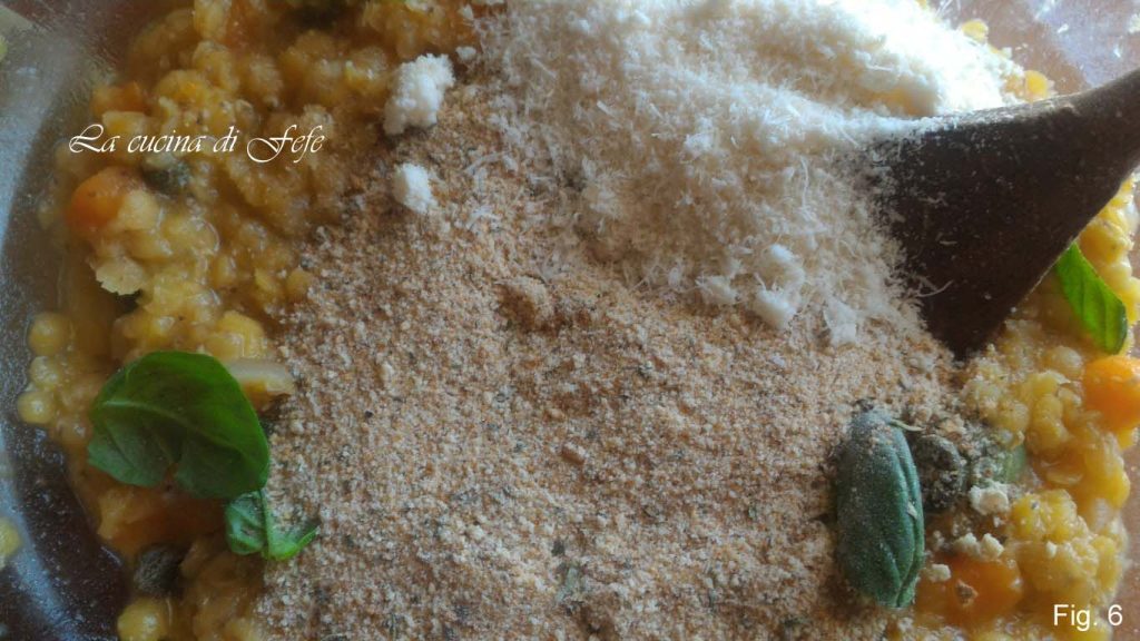Adjust the salt and pepper. Also add the breadcrumbs and grated Parmigiano (fig. 6).