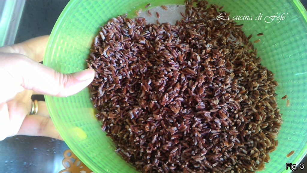 • Start by thoroughly rinsing the rice under running water, using a strainer (fig. 1).