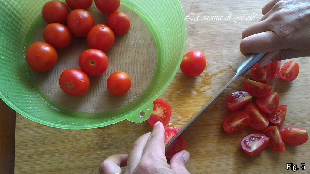 • Wash, dry, and cut the cherry tomatoes in half (fig. 5).