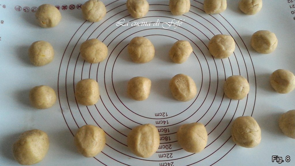 Roll them to give a spherical shape and place them on a baking sheet with a silicone mat as I did or lined with parchment paper in an orderly manner, a couple of centimeters apart, to prevent them from sticking together during baking. Bake in a preheated oven, static mode at 350°F for about 10′-11′.