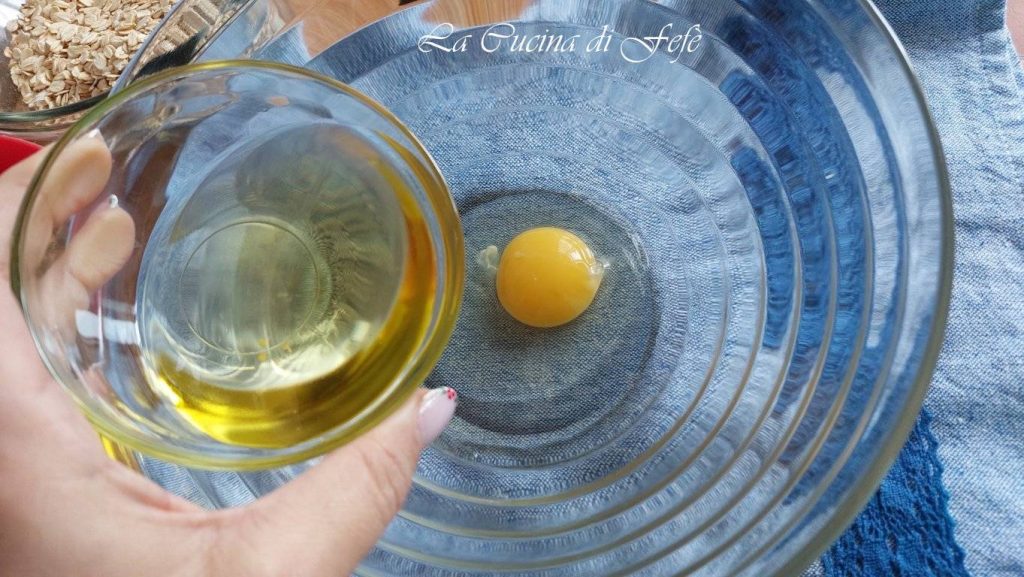 • In a large mixing bowl, first add the egg and then the sesame oil.