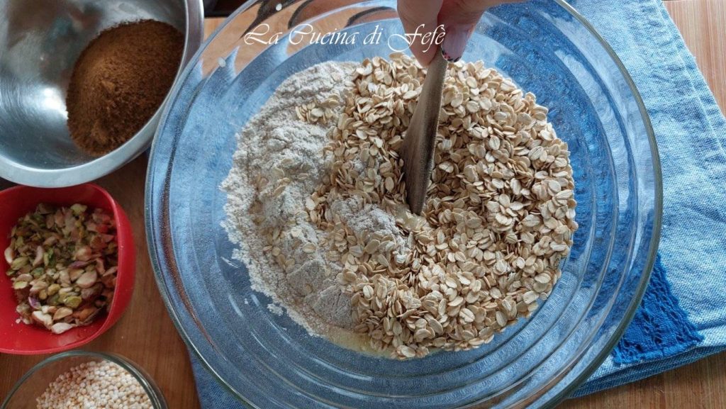 🟣For a “crunchy” effect, slightly toast the oat flakes, pistachios, and hazelnuts in a pan for 5 minutes before adding them to the dough.