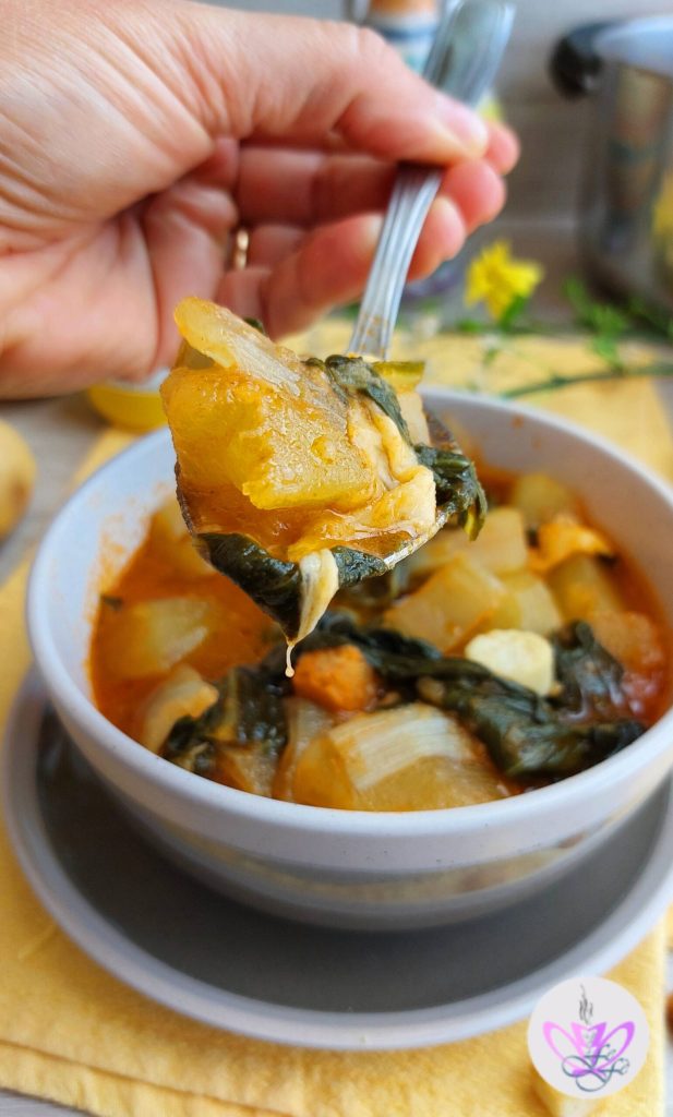 👉 The potato and Swiss chard soup is one of those dishes that tastes even better the next day because the flavors have time to meld perfectly. It keeps very well in the refrigerator for 3-4 days inside an airtight container, preferably glass. The next day the potatoes will have absorbed much of the broth, so when reheating you may need to add a splash of water or vegetable broth. But we actually prefer it that way.