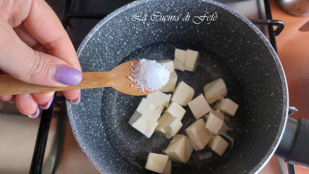 Melt over low heat, then wait for the first sign of boiling, and only then add the flours, all at once as a cascade.