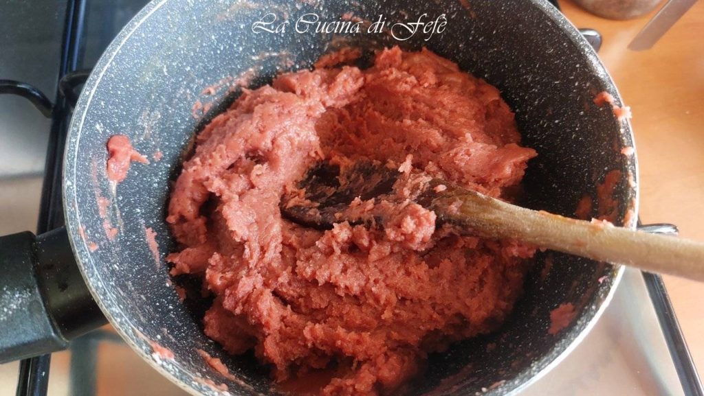 In a few seconds, the dough will change consistency, so stir with a wooden spoon until it pulls away from the sides of the pot forming a sort of ball.