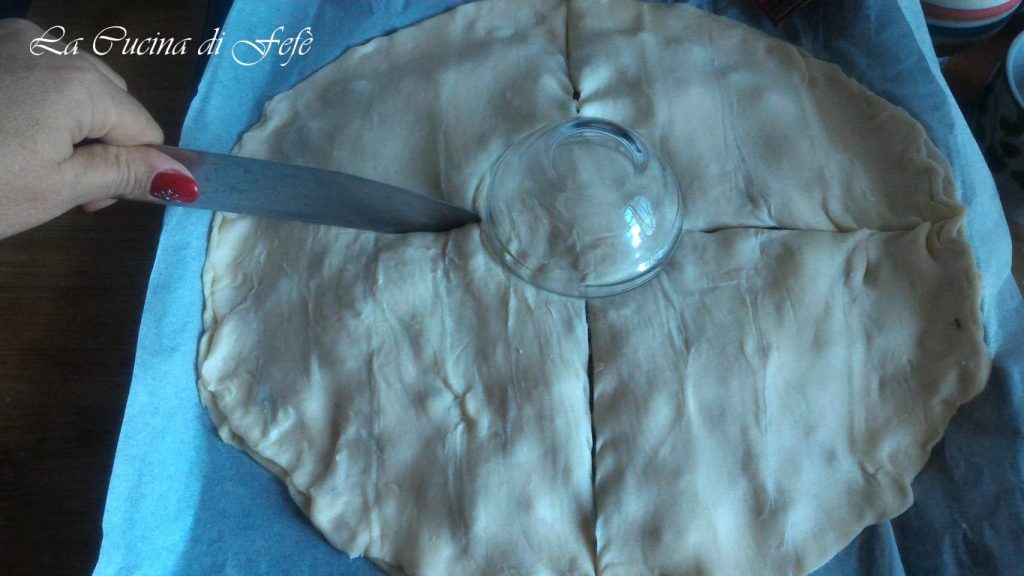 Place a bowl in the center and divide into 4 parts with the help of a knife.