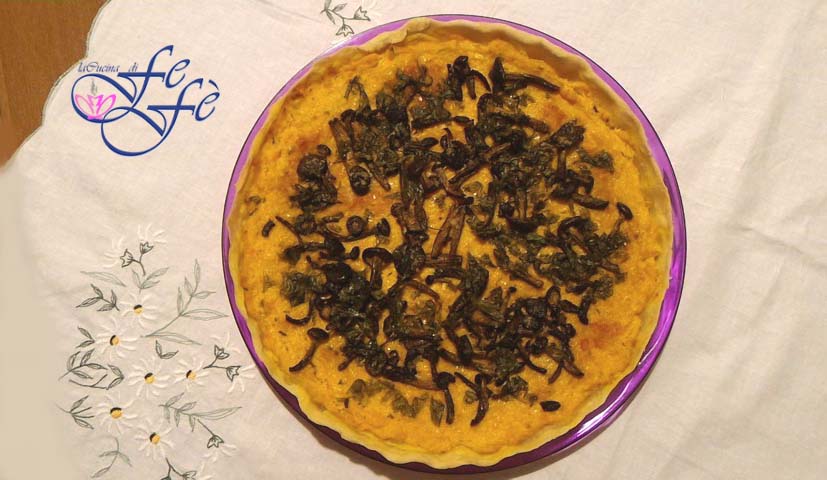How I love savory tarts! They are easy to prepare, convenient to transport, and great even when eaten cold! Just open the fridge and let your imagination run wild. Of course, it’s even easier to make them by buying the typical shortcrust pastry from supermarket refrigerated counters to solve the problem of a last-minute dinner. But if you think about it, the ingredients to make your homemade quiche are so simple and always available in our pantry that it would be a shame not to try it at least once! You will only have to decide to spend a little extra time, but believe me, the result will be so excellent that you’ll forget the bad habit of buying them ready-made! Here is my version with a creamy and indulgent filling made with Butternut squash, ricotta and pioppini mushrooms! I must confess this recipe was prepared just before the Christmas holidays, so if you can’t find this specific type of mushrooms at this time, also because of the unusual warmth of the last few weeks, you can substitute with champignons. You’ll bring some autumn flavors to the table in a really inviting and tasty dish. It will be perfect sliced into wedges to present to your guests as a rustic appetizer accompanied by a good prosecco, just to start the party!