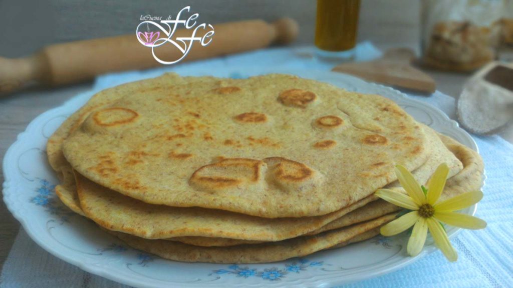 The piadina is a humble recipe typical of the Romagna culinary tradition and has very ancient origins. It is made with a few simple ingredients always present in our pantries such as flour, water, lard or extra virgin olive oil. Without yeast, it does not require long resting times and is cooked for just a few minutes on a very hot griddle or skillet. The result will be phenomenal because, in practice, it can be filled with anything your imagination suggests, becoming your go-to dish! You can serve it as a main dish for an informal lunch, use it as bread to accompany cheeses and cured meats, or create tasty appetizers for your summer dinners! My recipe uses a portion of whole wheat flour to give it a more rustic flavor and uses olive oil instead of lard to make it more digestible. I don’t need to say how good it is! Even simply eaten as it is, hot and crispy, it’s already a delight, but in the coming days I’ll give you some tips to make a truly surprising recipe both in taste and presentation! Meanwhile I recommend you note the quantities and the procedure to obtain, step by step, truly easy, quick, and above all genuine homemade piadine! Once you’ve tried them with your own hands, you won’t feel the need to buy them ready-made anymore!