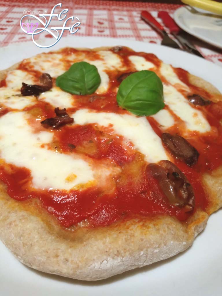 Some time ago, while chatting on the phone with my Neapolitan friend Giusy, talking about cooking as only we women know how to do, this beautiful recipe came up! Making homemade pizza often seems simple, but the final result has many uncertainties, and this depends on several factors. First of all, which yeast we use and how much of it, the time we let the dough rise, the technique we practice for folding, the type of oven and the consistency of the heat it can maintain, and so on. You could write a treatise if you wanted to delve into the topic, but I do not presume to speak, and I leave it to those who are competent and professional to give the right tips in this regard. In addition, not everyone tolerates the use of yeasts, especially the more commonly used brewer’s yeast. For example, I myself, not having sourdough, which is more suitable, limit myself a lot to avoid digestive problems. The fermentation of yeasts in the stomach is often a very delicate process. That’s why I welcomed my friend’s suggestion with joy when she explained that this dough, used by Neapolitan pizza makers, requires just under a gram of yeast! Yes, you read that right! Also, once you’ve prepared the dough, you’ll let it rest in the fridge for 24 hours and forget about it! The next day, at your convenience, you’ll let it acclimate to room temperature to let it rise until it’s time to portion, and finally stretch the pizzas by hand, without a rolling pin. I tell you it will result in a very light and especially digestible pizza that will cook in just a few minutes! I just made it more rustic by adding a part of whole wheat flour. I must say my husband is crazy about it, so once a week, I have to prepare it religiously! I offer you two versions, one with fior di latte and olives, and another with pumpkin cream. For optimal cooking, I finally recommend using a baking stone, but even without it, you can circumvent the problem with a small trick! Find out how.