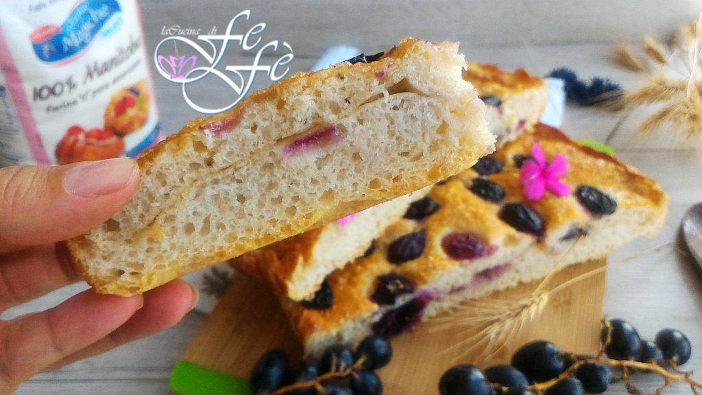 Finally, here in Sicily, the temperatures seem quite September-like, the air is significantly more pleasant and breathable, and turning on the oven becomes even a pleasant cuddle! Especially if it’s for a special occasion like the appointment with the column Il Granaio, where I chose to prepare a leavened with seasonal fruit that I love very much, grapes! This is a typical Tuscan dessert, especially from the areas of Prato and Florence, which draws its sweetness more from the fruit that is its protagonist, than from the sugar that is added between one surface and another in the dough! Indeed, this focaccia features two layers with a soft and delicate heart that will capture you at the first bite! It will be perfect at any time of the day, at breakfast, as a snack, or as a dessert after a meal! However, you have to take my word for it if I tell you that you will enjoy it even more if you pair it within an informal aperitif with cheese! Our family made this wonderful discovery, dining on this sweet focaccia sliced along with some spreadable cheese which was a beauty! I invite you to roll up your sleeves and try it out right away! You won’t be disappointed, promise!