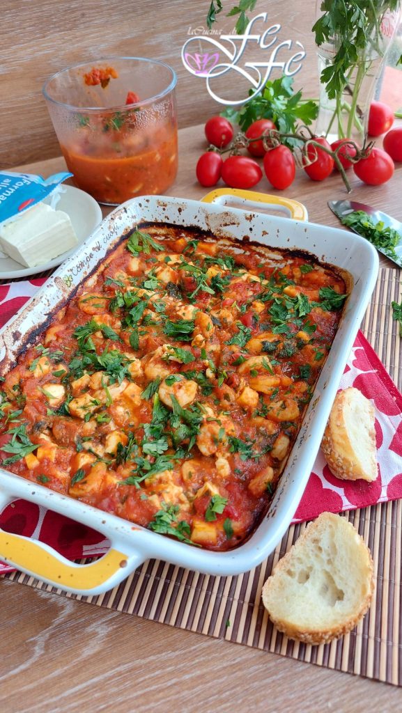 Those who followed me on social media know that this summer I spent my vacations in Greece, specifically in Crete, a wonderful island rich in history and stunning and untouched places! To be honest, the Greek islands have become our favorite destination, so much so that just before the pandemic, my husband and I had been to Santorini too, much smaller and more picturesque. Through their very simple and affordable cuisine, I discovered typical dishes that I wanted to replicate once I got home to share with you all. Shrimp saganaki is truly part of this tradition! And if you are a lover of Greek cuisine like me, you absolutely have to try them! The recipe is based on strictly fresh shrimp or prawns, although frozen ones could be used, but I do not recommend it because it would lose all the authentic flavor of this succulent dish! The addition of feta cheese, which Greeks use a lot and which many will wrinkle their noses at for pairing with seafood, is instead a great demonstration that certain combinations can be made, achieving truly pleasant results! In fact, the contrast between these two ingredients is remarkable but also exquisitely perfect, as the sweetness of the shellfish surprisingly embraces the saltiness of this local cheese. And as I mentioned, since the ingredients of Greek cuisine are rather simple, you just need to add some fresh cherry tomatoes, an onion, plenty of parsley, and extra virgin olive oil, and you’re done! You will get a sauce perfect for bread dipping that will be perfect, if you like, even for seasoning two spaghetti by diluting it with a couple of ladles of cooking water! A very simple recipe with great final yield in both taste and presentation.