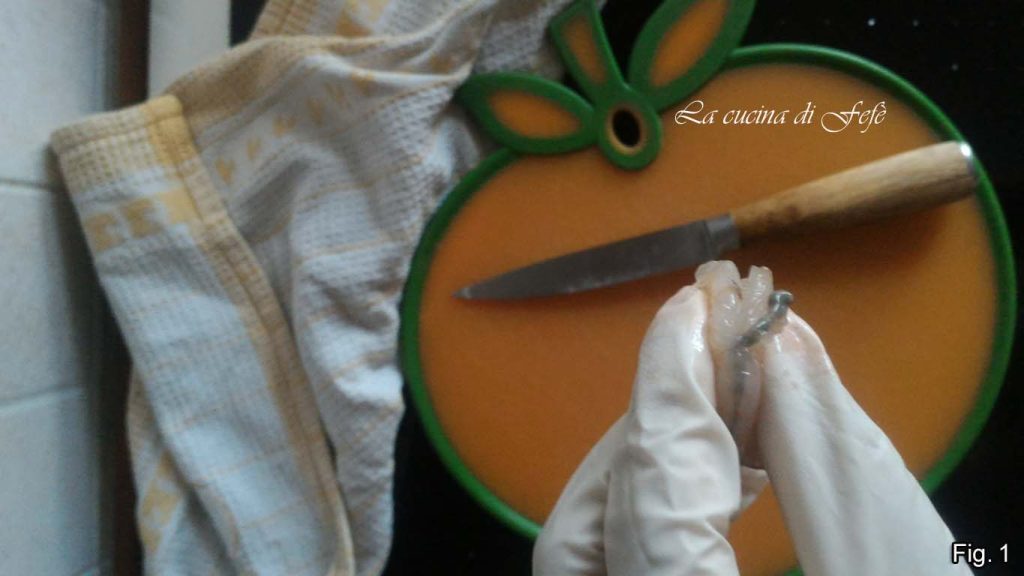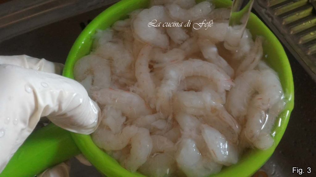 Before preparing this succulent dish, proceed with a very delicate operation, namely cleaning the shrimp by removing the internal intestine (fig. 1).