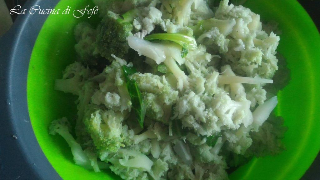 • Making Sicilian cauliflower meatballs is really easy: first you need to clean the cauliflower, removing the outer leaves and stem, which you can use for a soup, and cut the rest into florets.