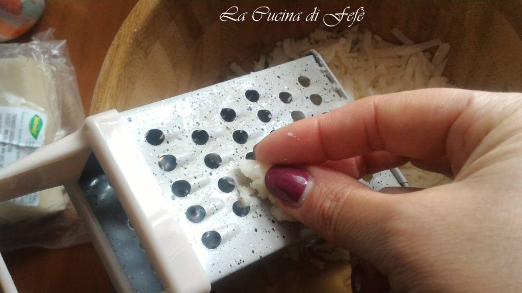 • Also add the parmesan, the grated pecorino, the nutmeg, the chopped garlic, and the black pepper.