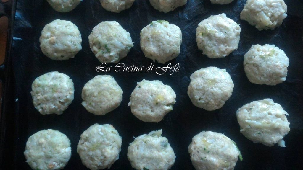 • As you form the meatballs, place them, gently flattening them with your hands, on a baking tray lined with parchment paper or a reusable Teflon sheet.