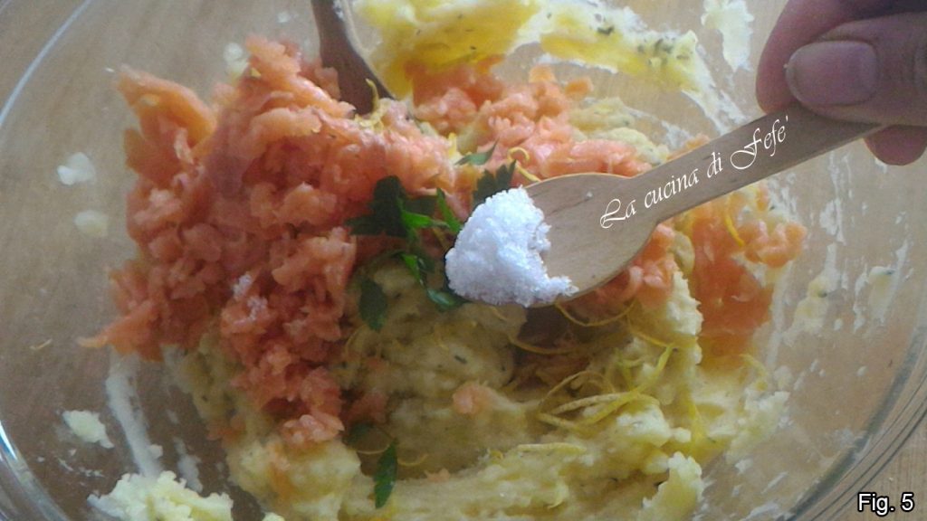 • Add the salmon previously chopped with a knife.