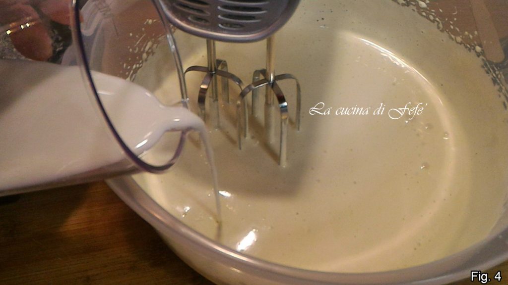 With the electric whisks at maximum speed, work the eggs for 5′ with the sugar in a bowl (fig. 1).