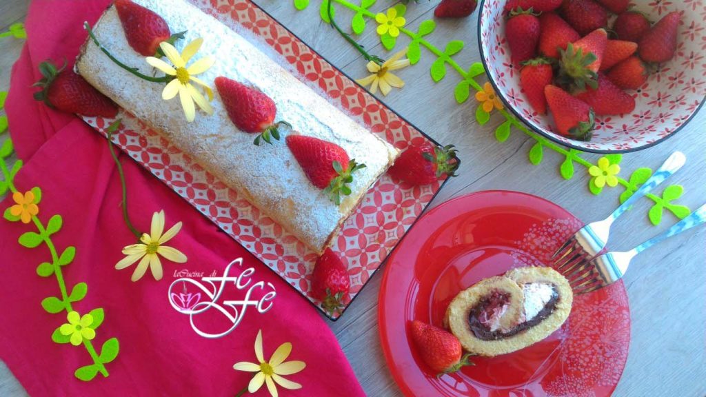 For weeks I had been waiting for strawberry season to remake this wonderful recipe, which I prepared a few years ago for my sister’s birthday. I remember this sponge cake roll was a big hit, loved by everyone, but the photos back then, taken in a hurry, were really terrible! So, taking advantage of buying a nice crate of strawberries, I decided to update the photos on the blog as well! And, as they say in these cases, I killed two birds with one stone, also making it the Sunday dessert! I hope to entice you with this irresistible roll, which I filled with a strawberry coulis, Nutella as if there were no tomorrow, and whipped cream! Certainly a classic that cannot be missed this season! It will be perfect as a dessert at the end of a meal, as a delicious snack, or for any occasion you wish! A little spring treat that, like all the recipes I propose to you, will be very simple to make. Just a few steps to obtain a highly impressive dessert!